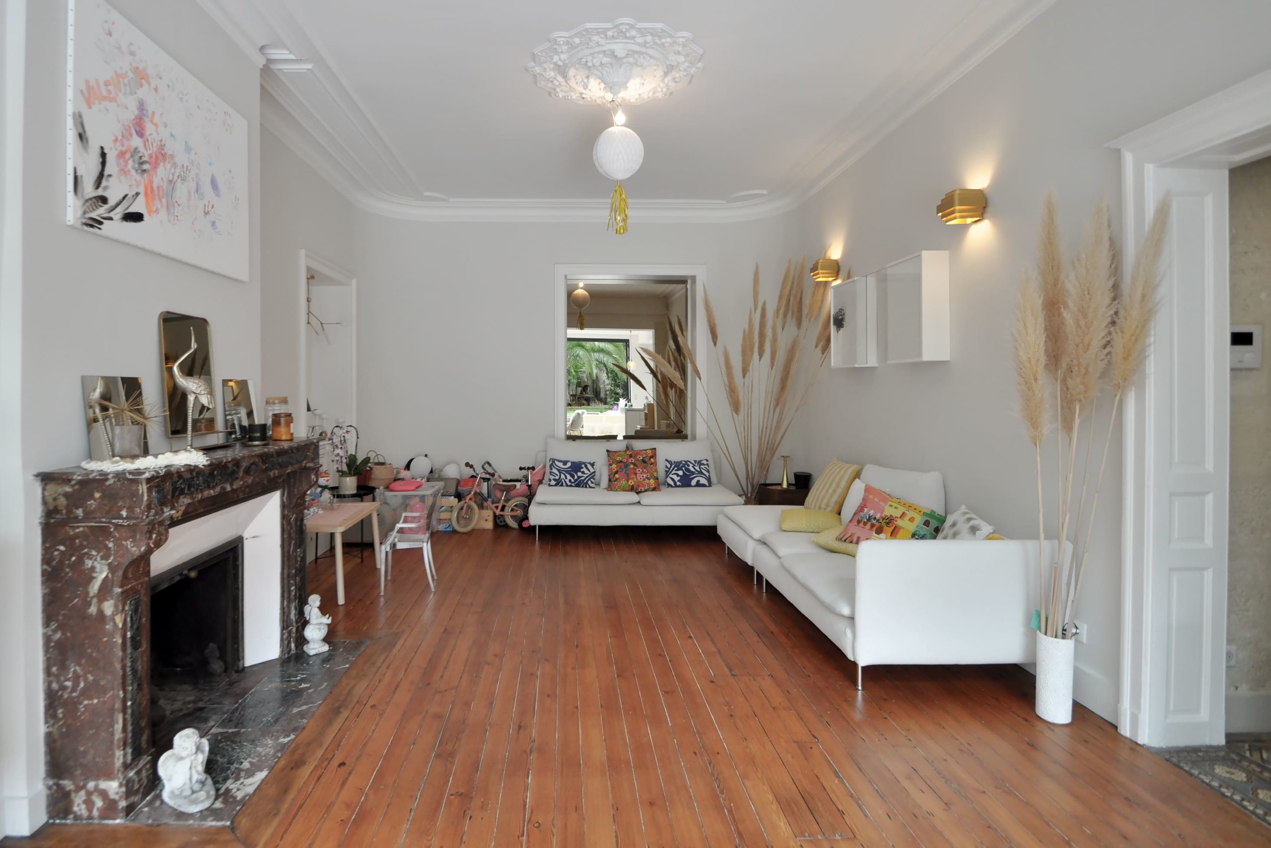 Le salon, plus intime, profite des ouvrages de l’époque avec la cheminée existante, les moulures et le parquet d’origine. Le premier étage reçoit une suite parentale traversante très généreuse tournée vers le jardin avec une belle terrasse bois ainsi qu’un très large bureau. Le dernier niveau est dédié aux enfants en accueillant trois belles chambres avec salle de bains.