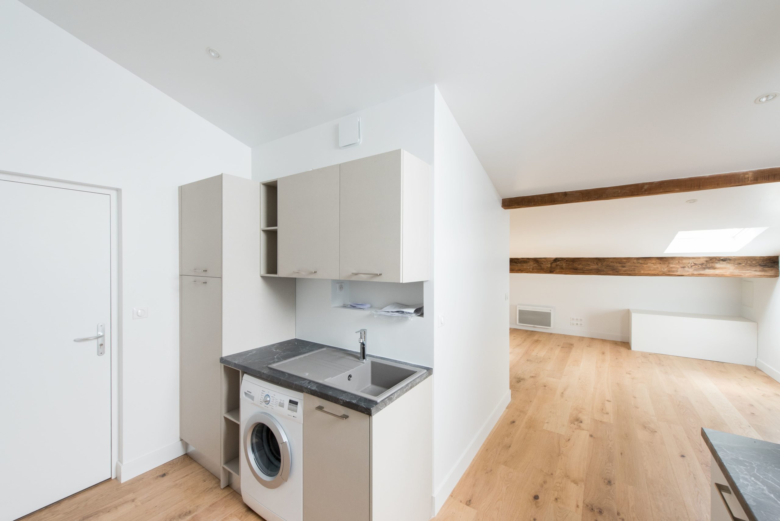Sur l’arrière, le logement sous les toits bénéficie d’une terrasse tropézienne. Deux puits de jour permettent de compléter les apports de lumière dans les logements. Le rez-de-chaussée, quant à lui, permet d’intégrer 5 stationnements à disposition des futurs usagers.