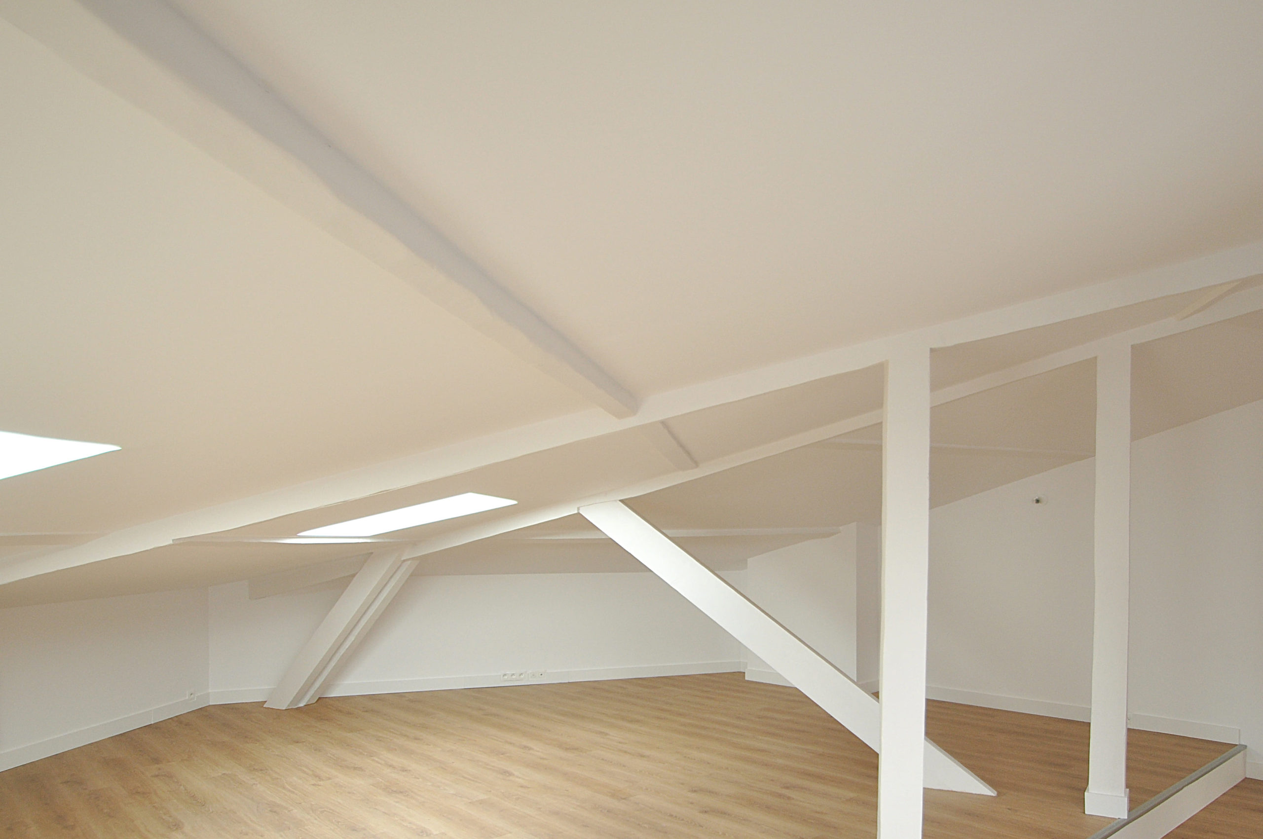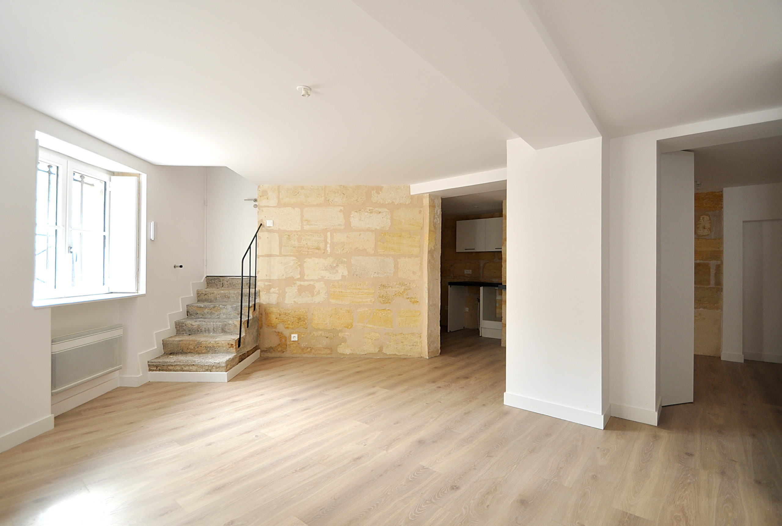 Cet immeuble accueille 7 appartements au caractères singuliers. On y trouve alors de belles hauteurs sous plafond pour les niveaux intermédiaires, une charpente mise en valeur au dernier niveau et des larges murs en pierre au premier niveau.