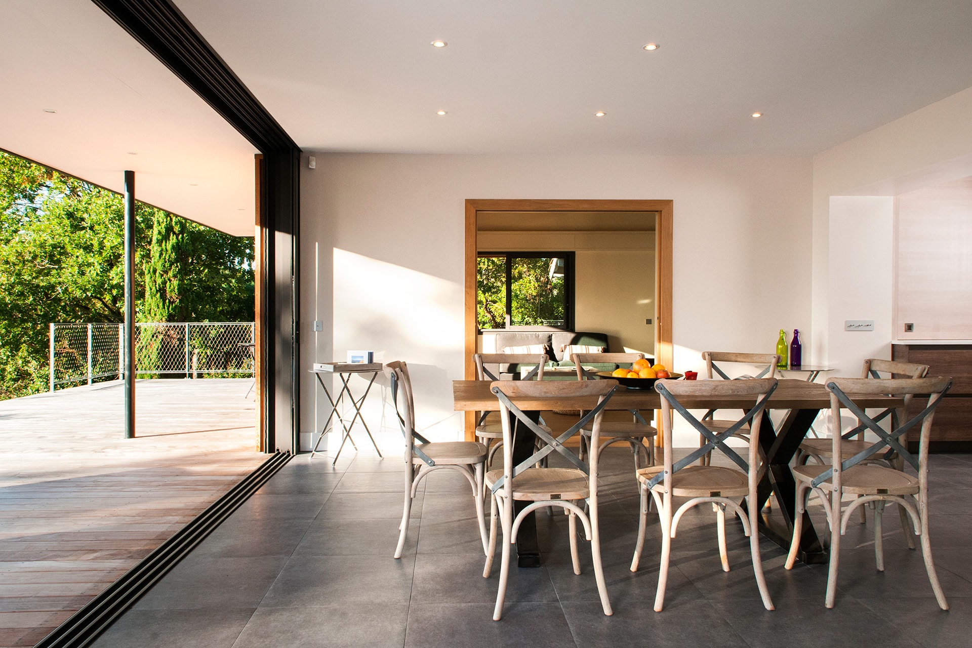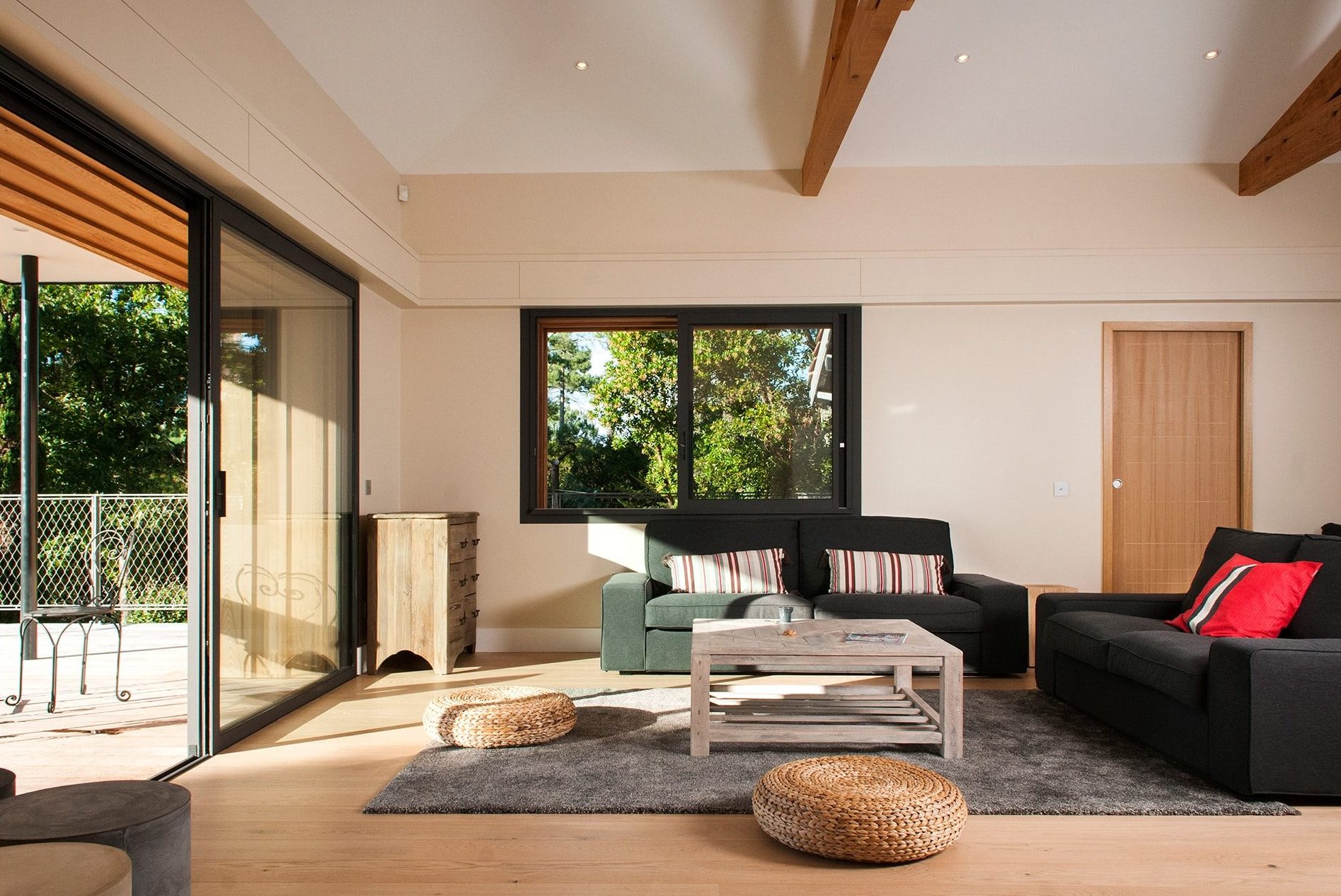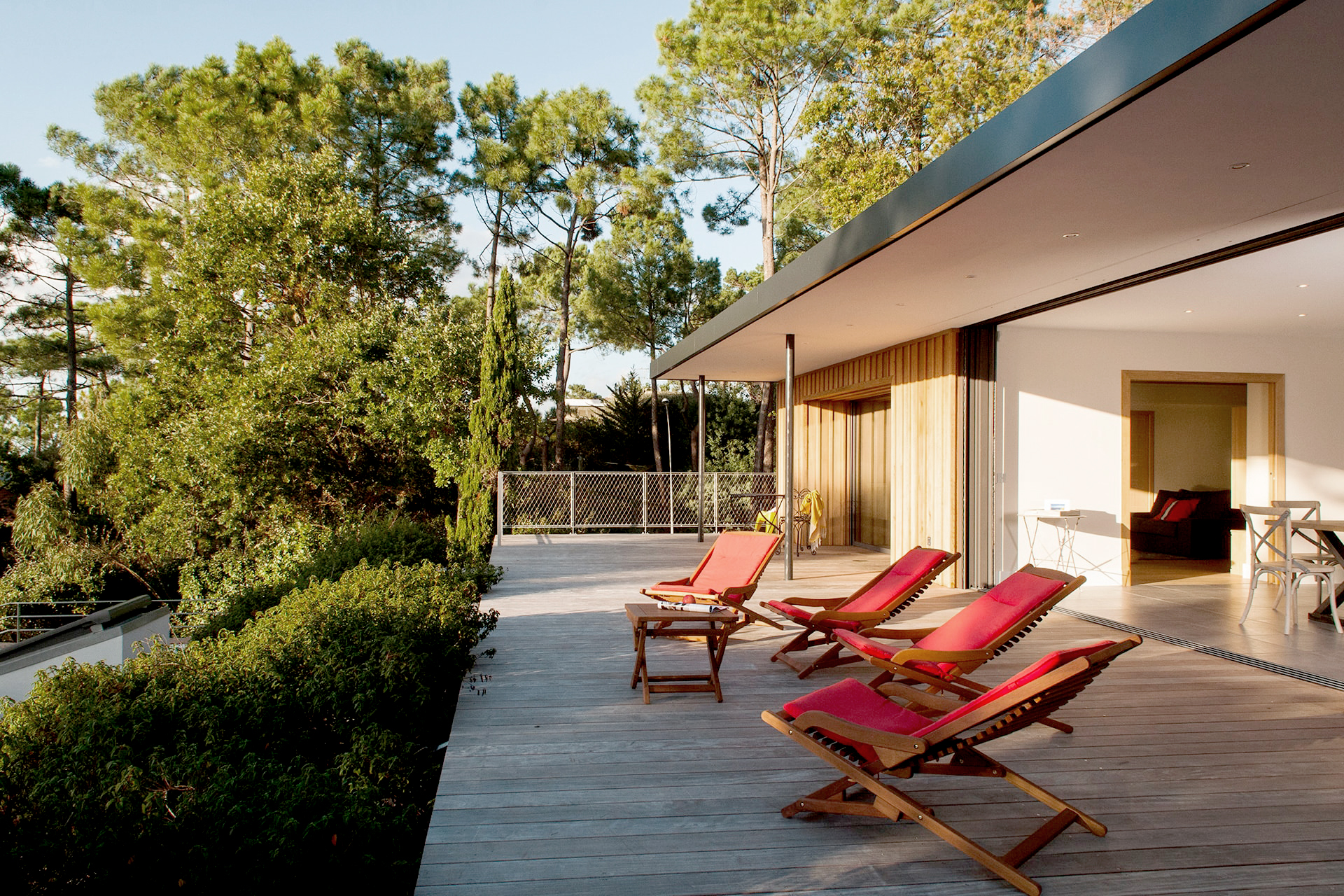 La vue est a couper le souffle. À travers les pins, se dévoile le bassin et ses multiples couleurs tout au long de l’année. Chaque réunion de chantier était un nouveau prétexte pour redécouvrir sans cesse cette vue.